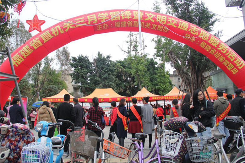 為深入貫徹落實黨的十九大精神,培育和踐行社會主義核心價值觀,學(xué)習(xí)雷鋒精神,廣泛普及志愿服務(wù)理念 ,3月6日上午,“不忘初心 砥礪前行”—福建省直機(jī)關(guān)三月學(xué)雷鋒暨文明交通志愿服務(wù)活動在屏山地鐵站附近廣場舉行。本次活動由福建省直機(jī)關(guān)文明辦主辦,福建省運輸管理局協(xié)辦,來自我院等十余家單位以及七名志愿者共同參加了活動。