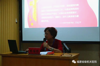 黨委副書記、副院長(zhǎng)陳榕珍上題為《學(xué)習(xí)黨章,踐行黨章》的專題教育黨課。黨章是馬克思主義建黨理論與中國(guó)實(shí)際相結(jié)合的產(chǎn)物,隨著中國(guó)共產(chǎn)黨的成立而產(chǎn)生,隨著黨的事業(yè)的發(fā)展而不斷完善,97年的黨章建設(shè)史,就是濃縮的中國(guó)共產(chǎn)黨歷史。陳榕珍副書記帶領(lǐng)大家共同回顧黨章的建設(shè)歷程,學(xué)習(xí)新黨章修改的主要內(nèi)容,要求廣大黨員要認(rèn)真學(xué)習(xí)黨章、尊崇黨章、踐行黨章,切實(shí)增強(qiáng)“四個(gè)意識(shí)”,立足崗位、求真務(wù)實(shí)、任勞任怨,以更加飽滿的熱情,更加昂揚(yáng)的斗志,牢記宗旨,踐行忠誠(chéng),扎實(shí)工作,在深化醫(yī)改、服務(wù)患者、履職盡責(zé)中爭(zhēng)創(chuàng)佳績(jī)。