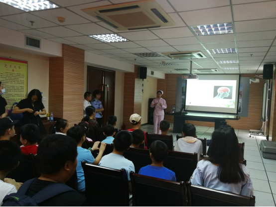 急危重癥??菩〗M組長羅坤金護(hù)士長首先向?qū)W員們講解心肺復(fù)蘇的重要性及科普性,同時(shí)考慮到此次培訓(xùn)對(duì)象以小學(xué)生為主,引入了時(shí)下最火的抖音APP敘述心肺復(fù)蘇在生活中的成功案例,一下吸引了大家的眼球。通過精心制作的PPT為大家進(jìn)行了急救知識(shí)講解CPR操作要領(lǐng),通過通俗易懂的語言傳授CPR的相關(guān)知識(shí)。通過播放CPR急救視頻,寓教于樂,增加授課效果。