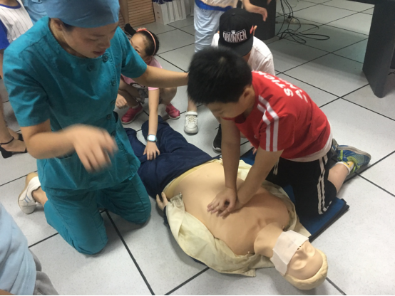 為了增加大家的積極性和感官效果,羅坤金、林彬兩位護(hù)士長自帶醫(yī)學(xué)模型和操作床墊,現(xiàn)場演練了CPR操作過程。演練結(jié)束后,所有小學(xué)員都躍躍欲試。通過兩位老師耐心細(xì)致的指導(dǎo)大家對(duì)心臟按壓的位置、深度、頻率及人工呼吸的方法都有了一定的了解。