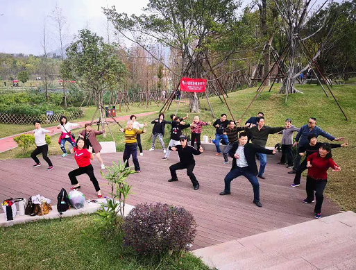 “兩手托天理三焦,左右開弓似射雕…”咦?正在牛崗山公園上演的這一幕是什么?