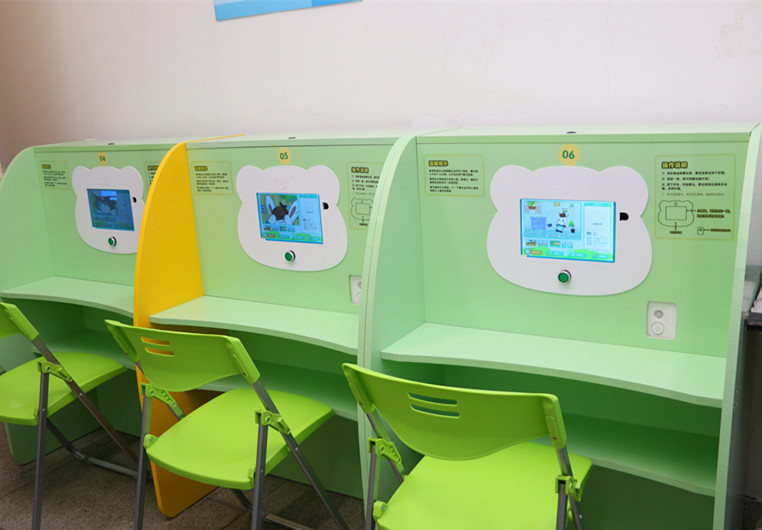 ? 卡位采用明亮顏色功能分區(qū)布局,同時循環(huán)播放幼兒喜愛的動畫片,治療也不是冷冰冰的啦
