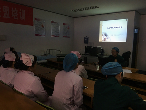 孫傳陽主管護(hù)師以我院常用的百帕VPAPIII ST-A QuickNav無創(chuàng)呼吸機(jī)為例,首先對無創(chuàng)呼吸機(jī)的原理、適應(yīng)癥、禁忌癥、上機(jī)操作程序、通氣模式的選擇、參數(shù)調(diào)節(jié)等進(jìn)行了詳細(xì)講解,接著對無創(chuàng)機(jī)械通氣操作進(jìn)行演示。孫護(hù)士強(qiáng)調(diào),正確的參數(shù)設(shè)置和有效的溝通可減輕患者的戴機(jī)恐懼、降低不適感,從而提高患者的治療依從性。培訓(xùn)后,大家對病房里使用無創(chuàng)呼吸機(jī)的參數(shù)設(shè)置提出問題并進(jìn)行討論。最后,通過考核讓大家加深了對此次培訓(xùn)知識的記憶。