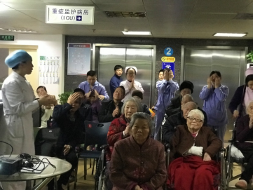 李華萍和魏丹護士將每一節(jié)手指操分開步驟學習,對于動作要領、功效及注意事項進行了詳細講解,??平M護士也隨著講解一起學習,并指導身邊的老人,護理員完成學習,學習完畢又帶著大家全套一起學習了一遍,鞏固學習成果,讓他們手指動起來,做個健康的老年人。全場學習氛圍濃厚,氣氛活躍。