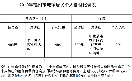2019年福州市城鎮(zhèn)居民個人自付比例表