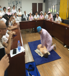 為提高社區(qū)工作人員急救能力,在緊急時(shí)刻最大程度挽救生命,福建省級(jí)機(jī)關(guān)醫(yī)院急危重癥??漆t(yī)務(wù)人員于2019年7月到鼓東社區(qū)為社區(qū)義務(wù)人員進(jìn)行心肺復(fù)蘇急救知識(shí)培訓(xùn)。使社區(qū)工作者經(jīng)過(guò)訓(xùn)練后便可掌握基本的搶救技能、心肺復(fù)蘇、人工呼吸、除顫儀的使用。