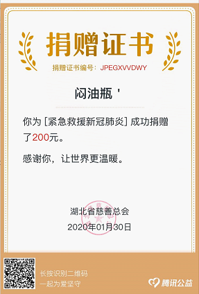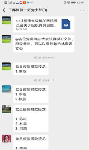 “這次疫情有多少優(yōu)秀的醫(yī)務(wù)人員戰(zhàn)斗在一線,有的獻(xiàn)出年輕的生命,我為他們點(diǎn)贊!國(guó)家有難匹夫有責(zé),我捐2000元?!边@是我院90歲高齡身處異地的離休黨支部張琴書(shū)記在微信里給黨群辦同志的留言,她隨即通過(guò)微信轉(zhuǎn)賬2000元,慷慨支持疫情防控。