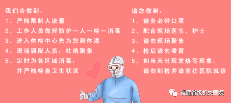 進(jìn)入體檢中心前,您必須接受體溫檢測(cè),體溫超過37.3℃則應(yīng)由我中心安排至本院發(fā)熱門診就診。