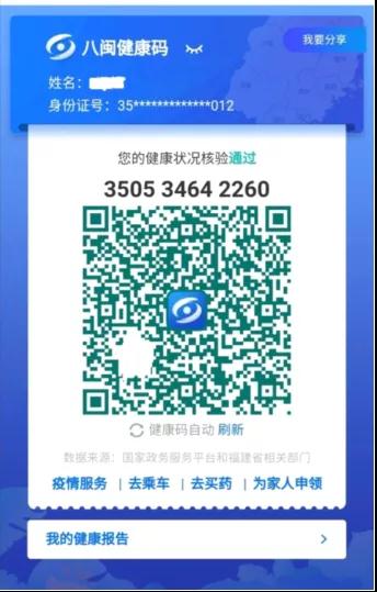 此外,用戶實(shí)名登錄閩政通APP,進(jìn)入“八閩健康碼”服務(wù),選擇“為家人申領(lǐng)”,按要求填寫家人身份信息和健康信息,即可為配偶、55周歲以上(含55周歲)父母、16周歲以下子女申領(lǐng)“八閩健康碼”。