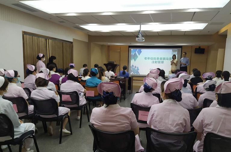 全院護士崗位技能競賽共分理論知識和技能操作兩個部分。理論知識以機考方式對全院護理人員進行專業(yè)知識的考核;技能操作競賽中,選手們溫暖熱情的服務用語、嫻熟的操作技能、良好的溝通能力使比賽更貼近臨床。