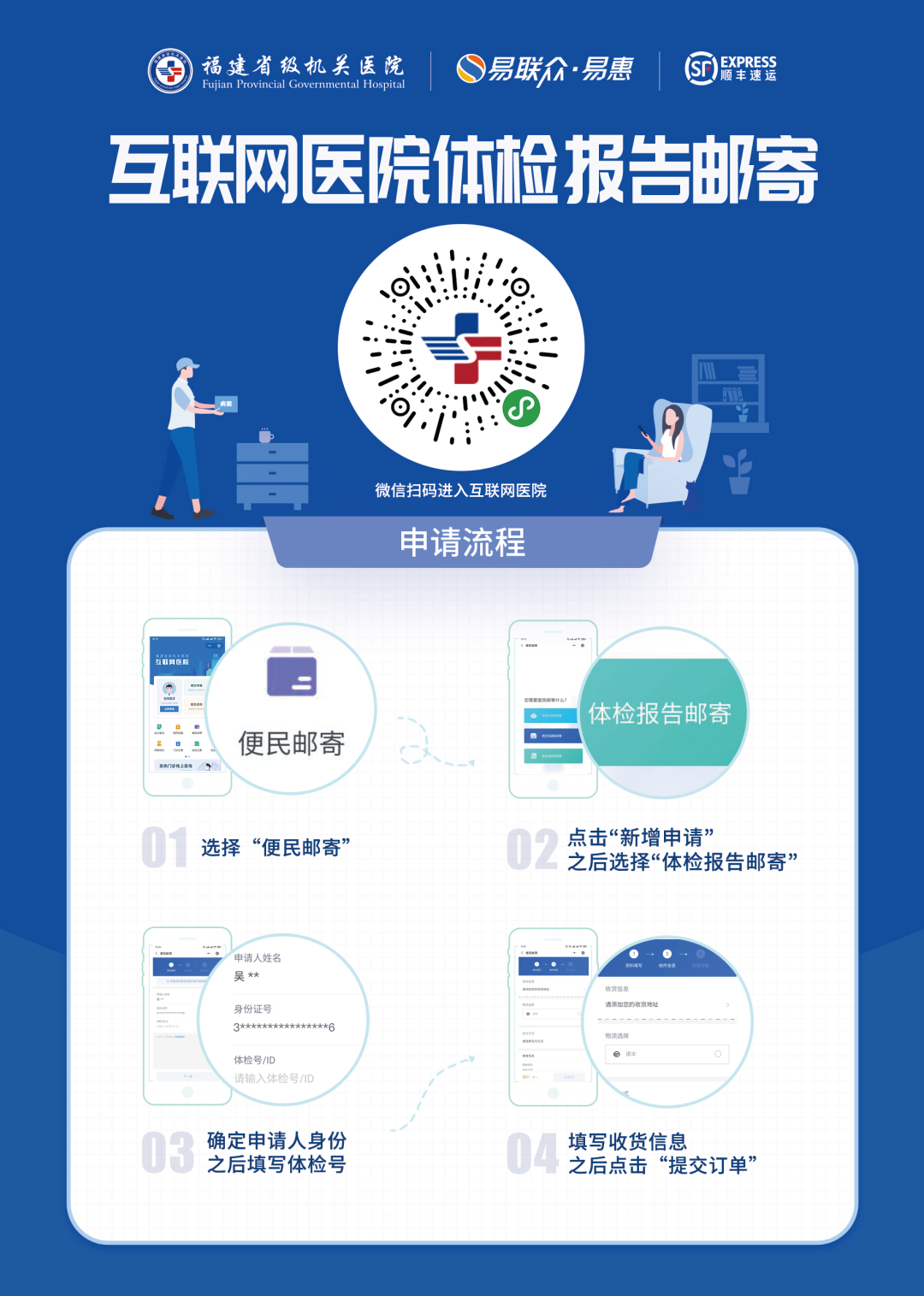 患者進(jìn)行體檢后,往往需要二次返院自取報告。流程繁瑣不說,多次的往返更是讓患者心力交瘁。但通過互聯(lián)網(wǎng)醫(yī)院的“體檢報告郵寄”服務(wù),患者可在線申請體檢報告郵寄,省時又省心。