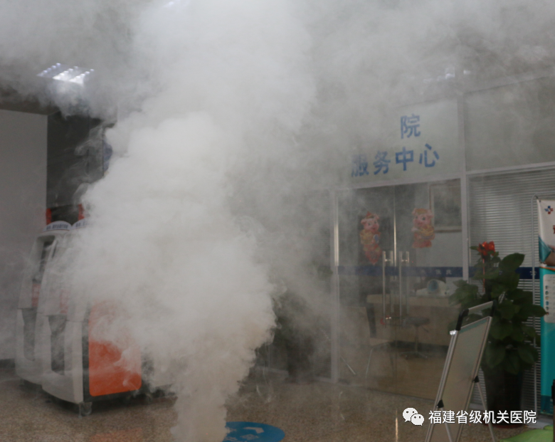 2020年6月19日下午16點(diǎn)30分,演練現(xiàn)場(chǎng),一股濃煙從住院服務(wù)中心冒出,煙霧觸發(fā)的警報(bào)聲持續(xù)鳴響。消控中心值班人員及安保人員立即核實(shí)報(bào)警點(diǎn)對(duì)應(yīng)的部位是否發(fā)生火災(zāi)。