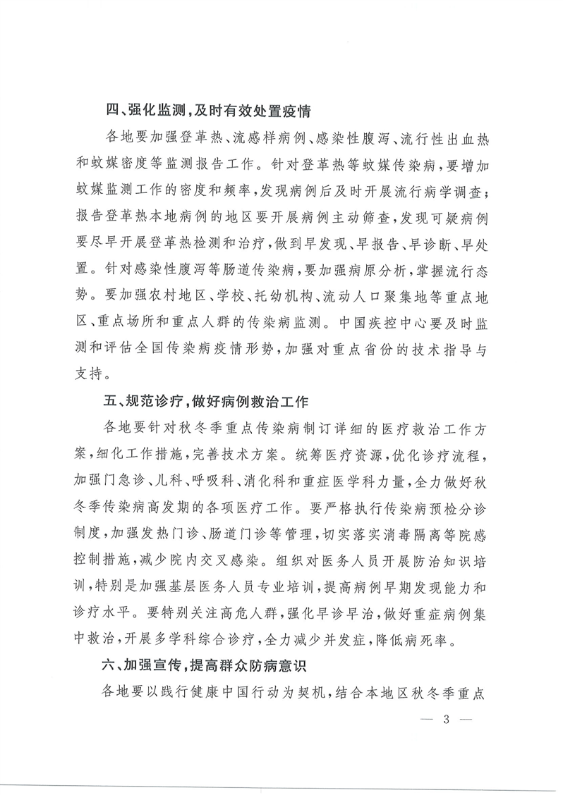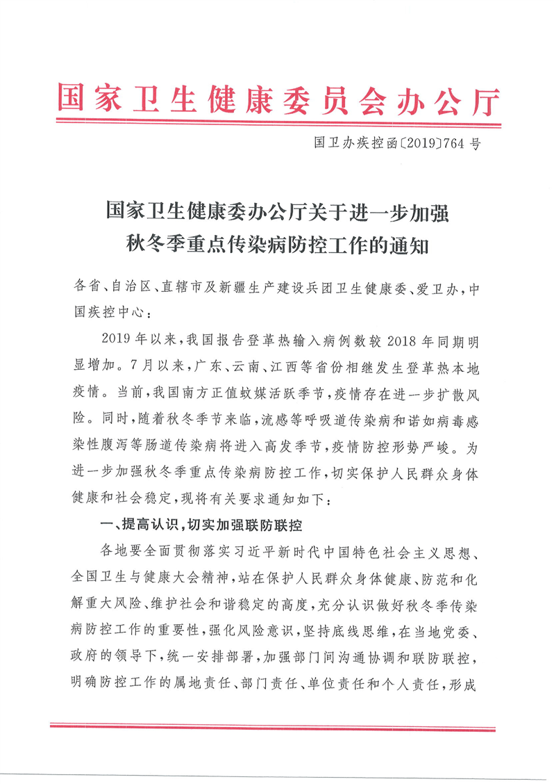 關(guān)于進(jìn)一步加強(qiáng)秋冬季重點(diǎn)傳染病防控工作的通知