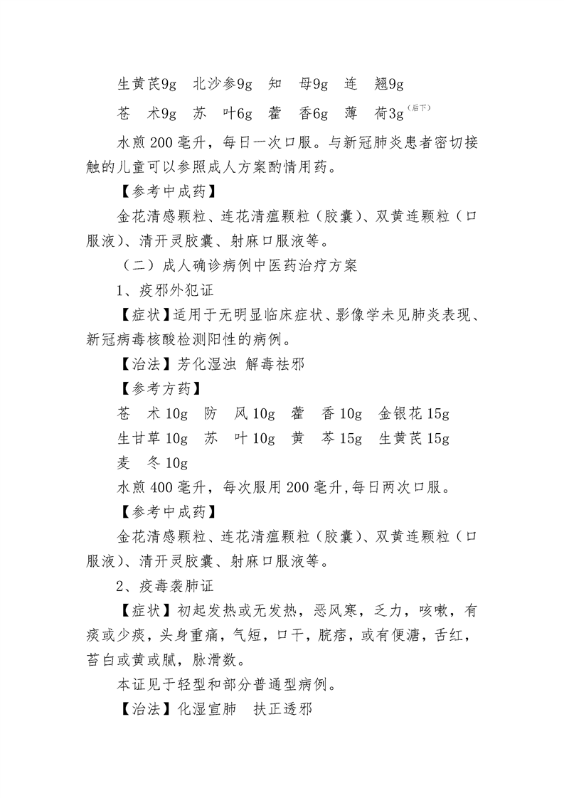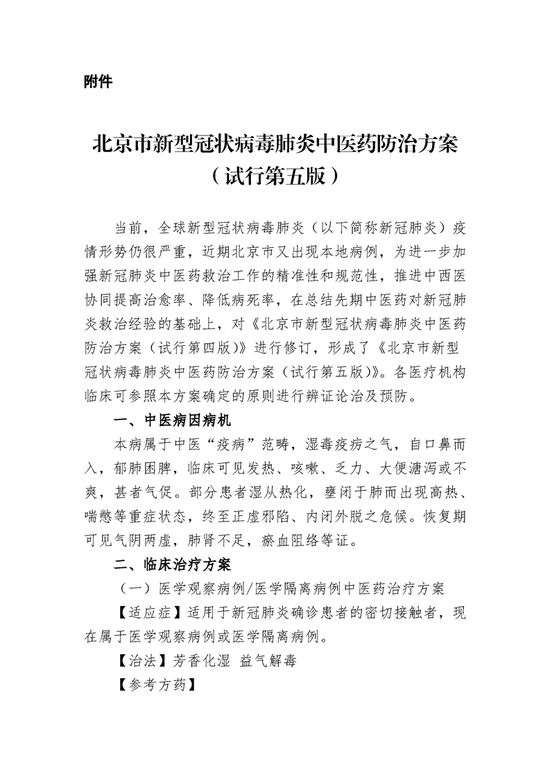 北京市新型冠狀病毒肺炎中醫(yī)藥防治方案(試行第五版)