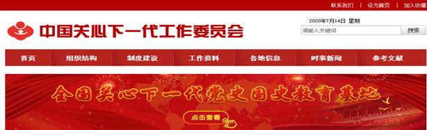 登錄“中國關系下一代工作委員會”官網首頁,點擊進入“全國關心下一代黨史國史教育基地”學習