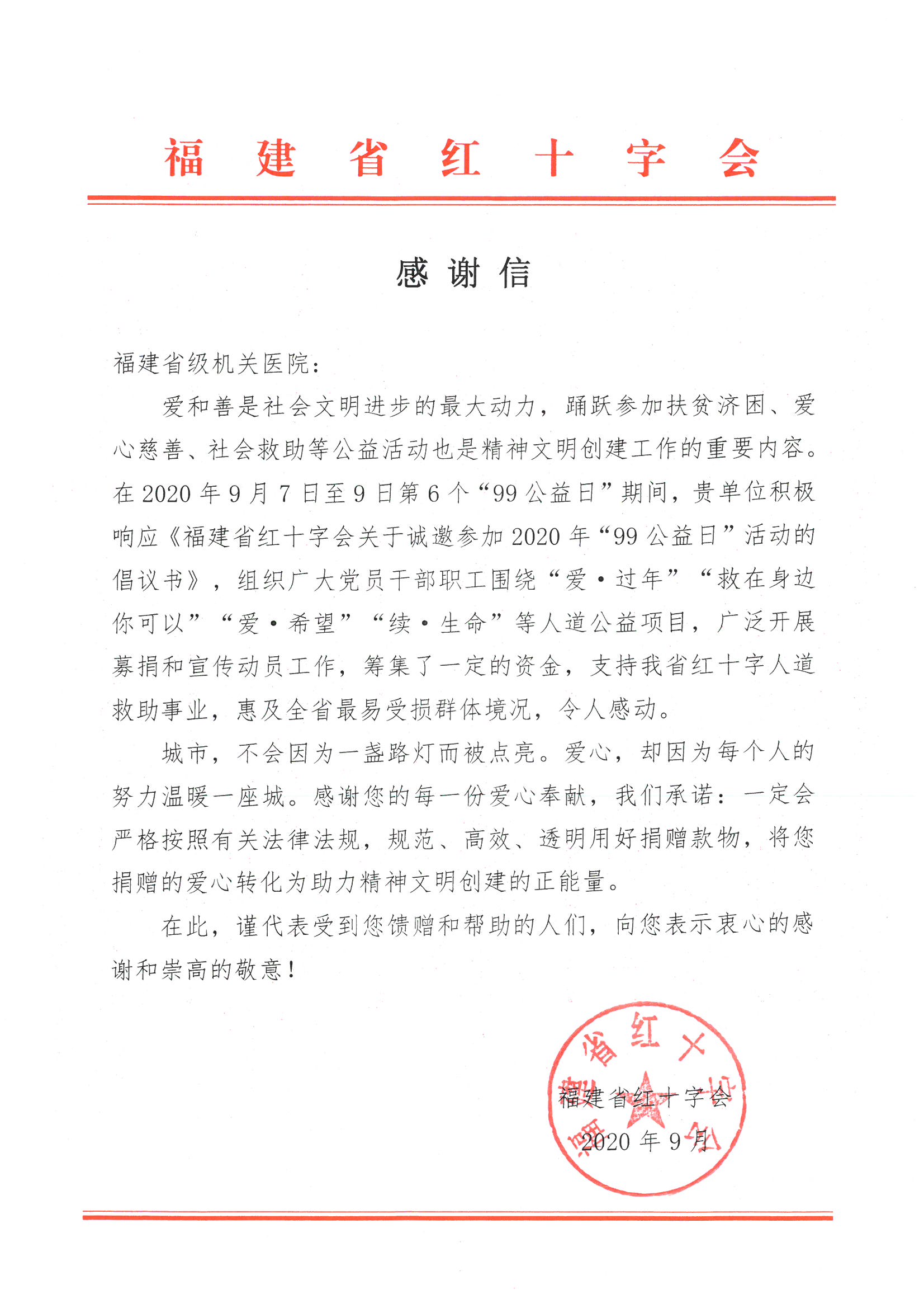 今年是脫貧攻堅的收官之年、決勝之年,為助力脫貧攻堅,傳遞社會正能量,2020年9月7日至9日,騰訊公益發(fā)起了第6個“99公益日”,福建省級機關(guān)醫(yī)院積極響應(yīng)省紅十字會和省衛(wèi)健委直屬機關(guān)黨委的號召,圍繞“救在身邊你可以”、“愛·過年”、“續(xù).生命”、“愛.希望”等四個慈善救助項目,開展“99公益日. 脫貧攻堅你我助力”行動,積極倡導(dǎo)全院黨員干部職工奉獻愛心,為慈善事業(yè)添磚加瓦。