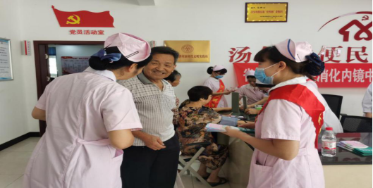 各位主任為村民解答有關(guān)胃腸常見病的癥狀、發(fā)病原因和防治知識、同時強(qiáng)調(diào)控制血糖的重要性;護(hù)士們?yōu)榇迕駵y血壓、血糖,告知村民控制血壓和血糖的健康知識,并發(fā)放《啥情況下您需要作何胃腸鏡檢查》、《如何預(yù)防結(jié)腸息肉》、《發(fā)現(xiàn)結(jié)腸息肉如何治療》、《如何防治便秘》等各種健康宣傳冊,活動受到了村民們的熱烈歡迎。