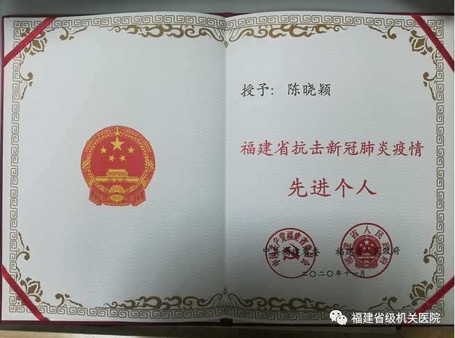 11月25日上午,福建省抗擊新冠肺炎疫情表彰大會(huì)在福州隆重召開。為弘揚(yáng)偉大抗疫精神,大會(huì)對(duì)我省抗擊新冠肺炎疫情先進(jìn)個(gè)人、先進(jìn)集體,全省優(yōu)秀共產(chǎn)黨員、全省先進(jìn)基層黨組織進(jìn)行表彰。我院神經(jīng)內(nèi)科主管護(hù)師陳曉穎同志獲評(píng)“福建省抗擊新冠肺炎疫情先進(jìn)個(gè)人”。