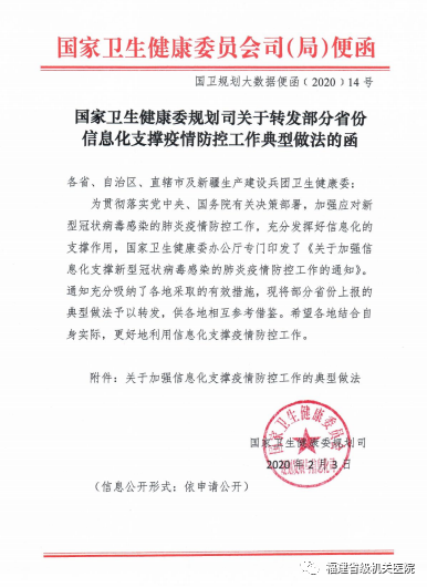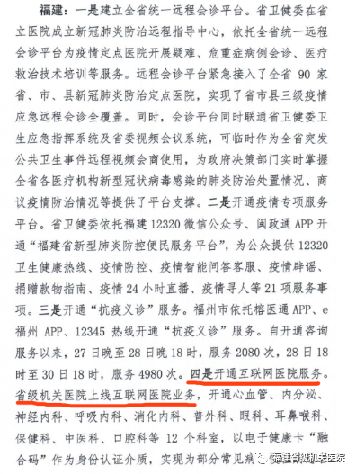 2020年2月3日,國(guó)家衛(wèi)健委規(guī)劃司發(fā)文肯定我院互聯(lián)網(wǎng)醫(yī)院的線上問(wèn)診是福建省信息化支撐疫情防控工作典型做法。