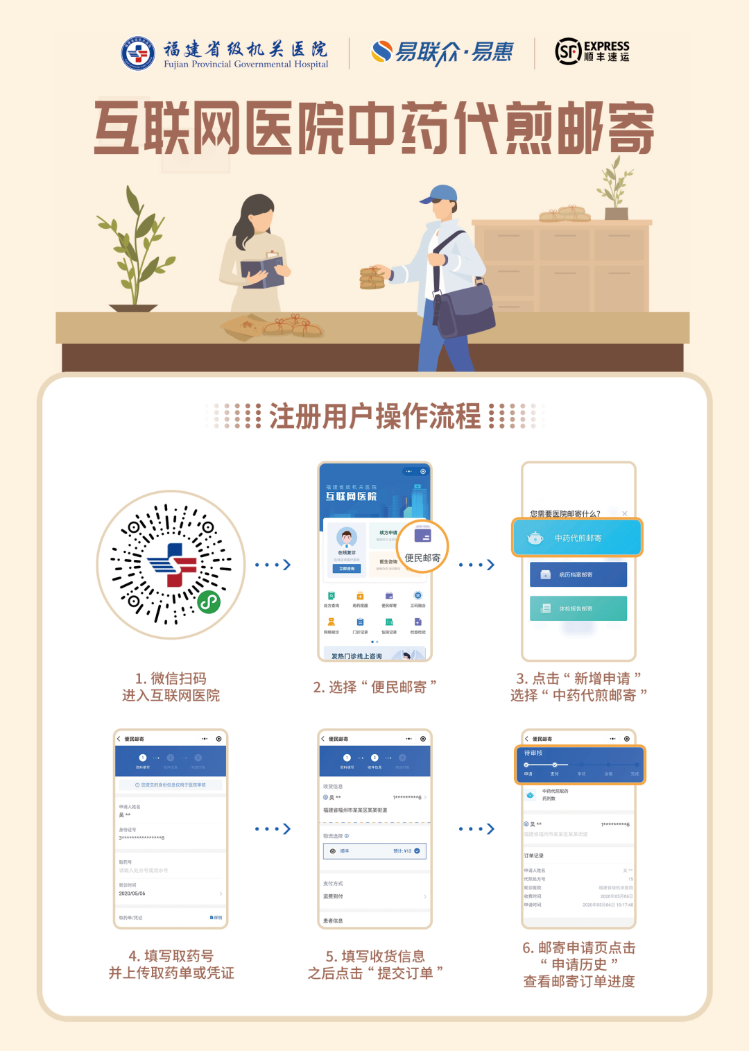2020年5月11日,為進(jìn)一步方便患者就醫(yī),互聯(lián)網(wǎng)醫(yī)院上線“便民郵寄”服務(wù),病案復(fù)印、中藥代煎、體檢報(bào)告領(lǐng)取均可線上申請(qǐng),郵寄到家,免跑腿、不等待!