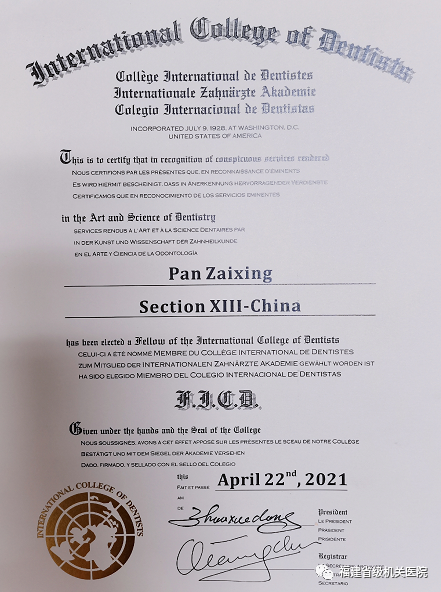我院潘在興教授當(dāng)選國際牙醫(yī)師學(xué)院院士充分證明了我院口腔醫(yī)療的實力和國際影響力。