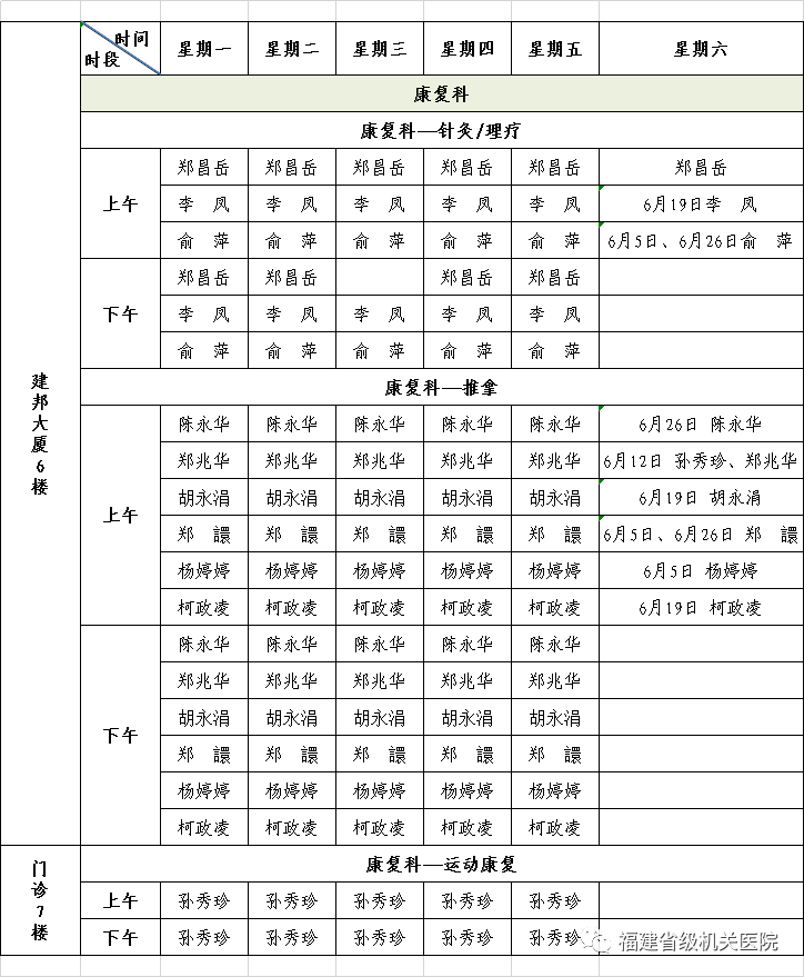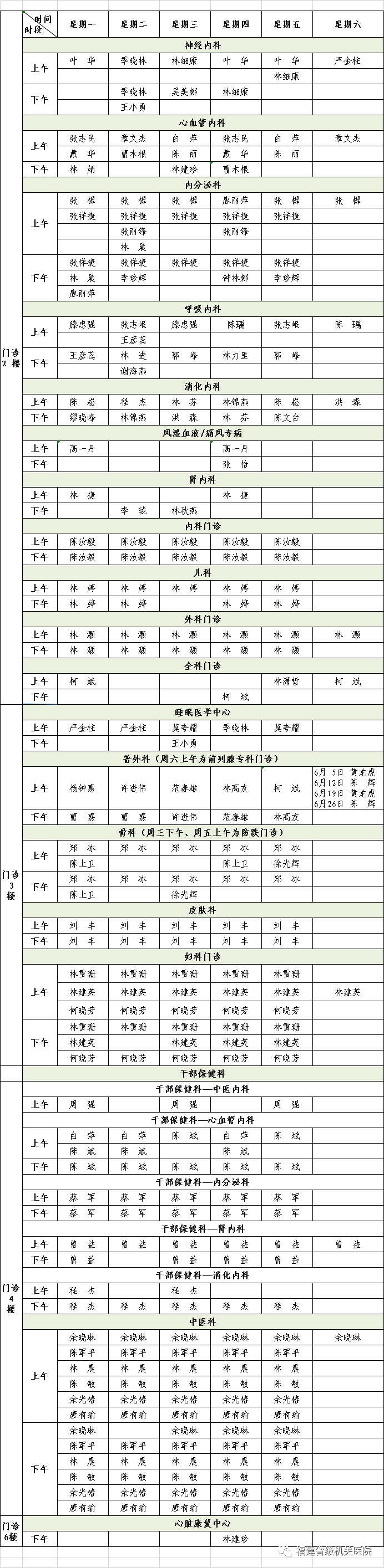 福建省級(jí)機(jī)關(guān)醫(yī)院6月專家門診排班表來(lái)啦!有需要的小伙伴趕緊收藏哦。