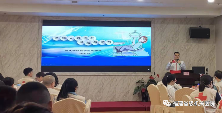 徐醫(yī)生將《老年人跌倒的風(fēng)險(xiǎn)與防范》帶到福建省紅十字師資課堂,對(duì)來(lái)自全省63位紅十字培訓(xùn)師資進(jìn)行授課。徐光輝醫(yī)師結(jié)合福建省級(jí)機(jī)關(guān)醫(yī)院開(kāi)展的老年人防跌門(mén)診所收集的真實(shí)案例,生動(dòng)有趣地講解了老年人跌倒的危害、風(fēng)險(xiǎn)、預(yù)防措施及培訓(xùn)老年人跌倒后如何進(jìn)行自救、互救,培訓(xùn)老年人預(yù)防跌倒的康復(fù)鍛煉方法,并希望通過(guò)各位紅十字師資將老年人跌倒的防范意識(shí)等知識(shí)在全省各地進(jìn)行傳播。