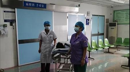 吳大姐在與手術(shù)室護(hù)士一起運(yùn)送病人