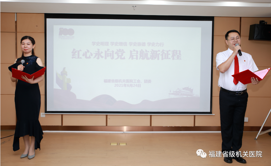 為慶祝中國共產(chǎn)黨成立100周年,推動(dòng)黨史學(xué)習(xí)教育不斷走深走實(shí),6月24日,我院工會(huì)、團(tuán)委聯(lián)合開展以“紅心永向黨·啟航新征程”為主題的誦讀比賽在口腔中心會(huì)議室舉行。來自各臨床、醫(yī)技和職能科室的16組選手參賽。比賽特邀省衛(wèi)健委直屬機(jī)關(guān)黨委調(diào)研員、工會(huì)副主席劉磊、團(tuán)委書記盧銘鳳,我院黨委副書記、工會(huì)主席黃純、紀(jì)委書記黃欣及黨群辦副主任張文清等出席活動(dòng)并擔(dān)任評(píng)委。