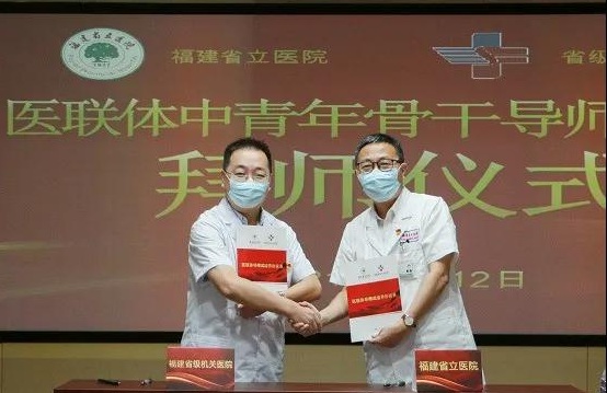 8月12日,福建省立醫(yī)院與福建省級(jí)機(jī)關(guān)醫(yī)院醫(yī)聯(lián)體中青年骨干導(dǎo)師式培養(yǎng)拜師儀式在省立醫(yī)院隆重舉行。省立醫(yī)院黨委書記、院長朱鵬立與省級(jí)機(jī)關(guān)醫(yī)院黨委書記黃守勤代表兩院簽訂《醫(yī)聯(lián)體中青年骨干導(dǎo)師式培養(yǎng)協(xié)議》。