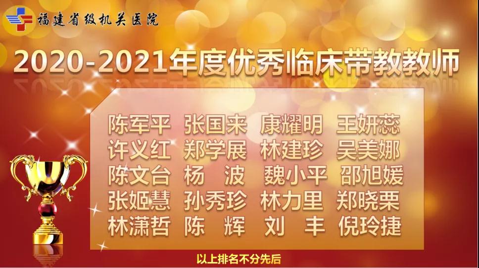 8月18日下午,我院舉辦2021年中國(guó)醫(yī)師節(jié)表彰大會(huì)。會(huì)上副院長(zhǎng)章文杰宣讀了“三基技能競(jìng)賽”、2020-2021年度優(yōu)秀質(zhì)控員、2020-2021年度先進(jìn)帶教科室及優(yōu)秀臨床帶教教師以及“病例演講比賽”獲獎(jiǎng)?wù)呙麊危钨e及院領(lǐng)導(dǎo)為獲獎(jiǎng)科室及個(gè)人進(jìn)行頒獎(jiǎng)。