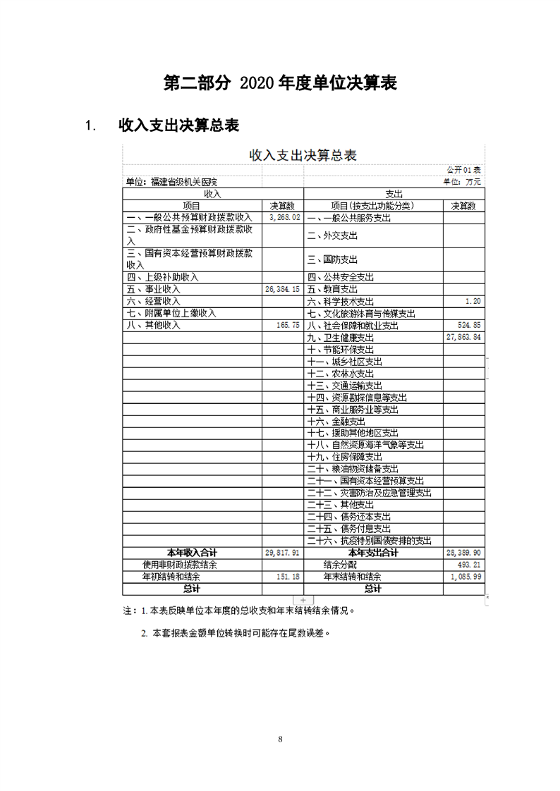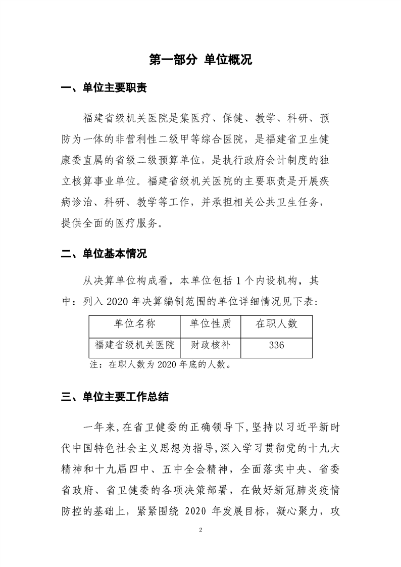 2020年度福建省級機關(guān)醫(yī)院決算公開報告