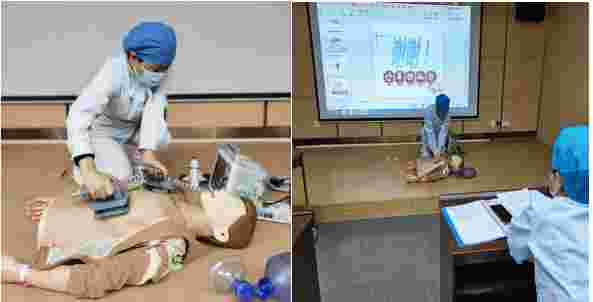 為有效預防和妥善處置治療中的突發(fā)事件,如暈厥、休克、心跳驟停、高血壓危象等,口腔中心堅持預防在先,防訓結合,11月8-12日口腔??谱o理團隊利用中午休息時間,分別開展了”跌倒和昏迷的緊急救助流程”、”心肺復蘇”專項理論培訓,強化醫(yī)務人員風險防范意識;并對心肺復蘇、除顫儀、簡易呼吸氣囊三個急救技能進行了操作練習,確保所有人熟練掌握急救技能,并通過考核。