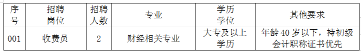因工作需要,我院需向社會招聘聘用收費(fèi)員2人。