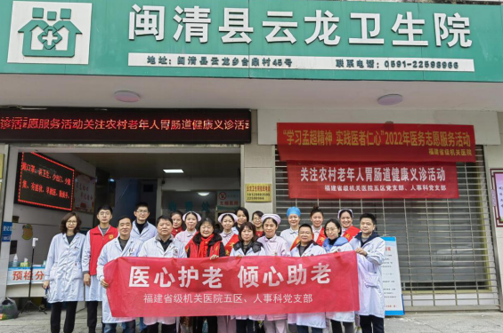 2022年2月13日,大年十三,冒著濛濛細(xì)雨,我院五區(qū)黨支部聯(lián)合人事科黨支部,到閩清縣云龍鄉(xiāng)開(kāi)展主題為“關(guān)注農(nóng)村老年人胃腸道健康”的黨日醫(yī)務(wù)志愿服務(wù)活動(dòng)。這是院黨支部貫徹落實(shí)院黨委“學(xué)習(xí)孟超精神 實(shí)踐醫(yī)者仁心”2022年醫(yī)務(wù)志愿服務(wù)活動(dòng)的第一場(chǎng)。