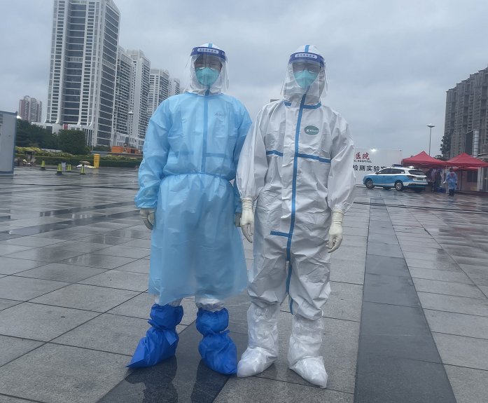 3月27日,檢驗(yàn)科林平、黃勝前往福州市第二醫(yī)院支援核酸檢測(cè)工作