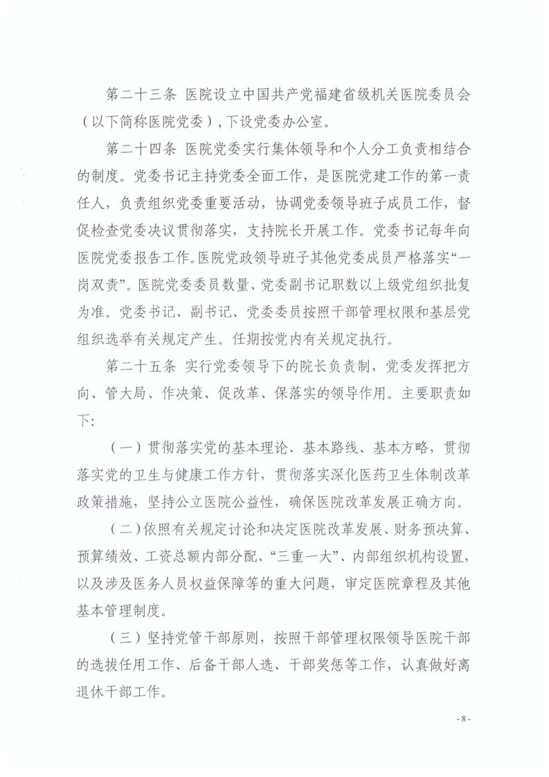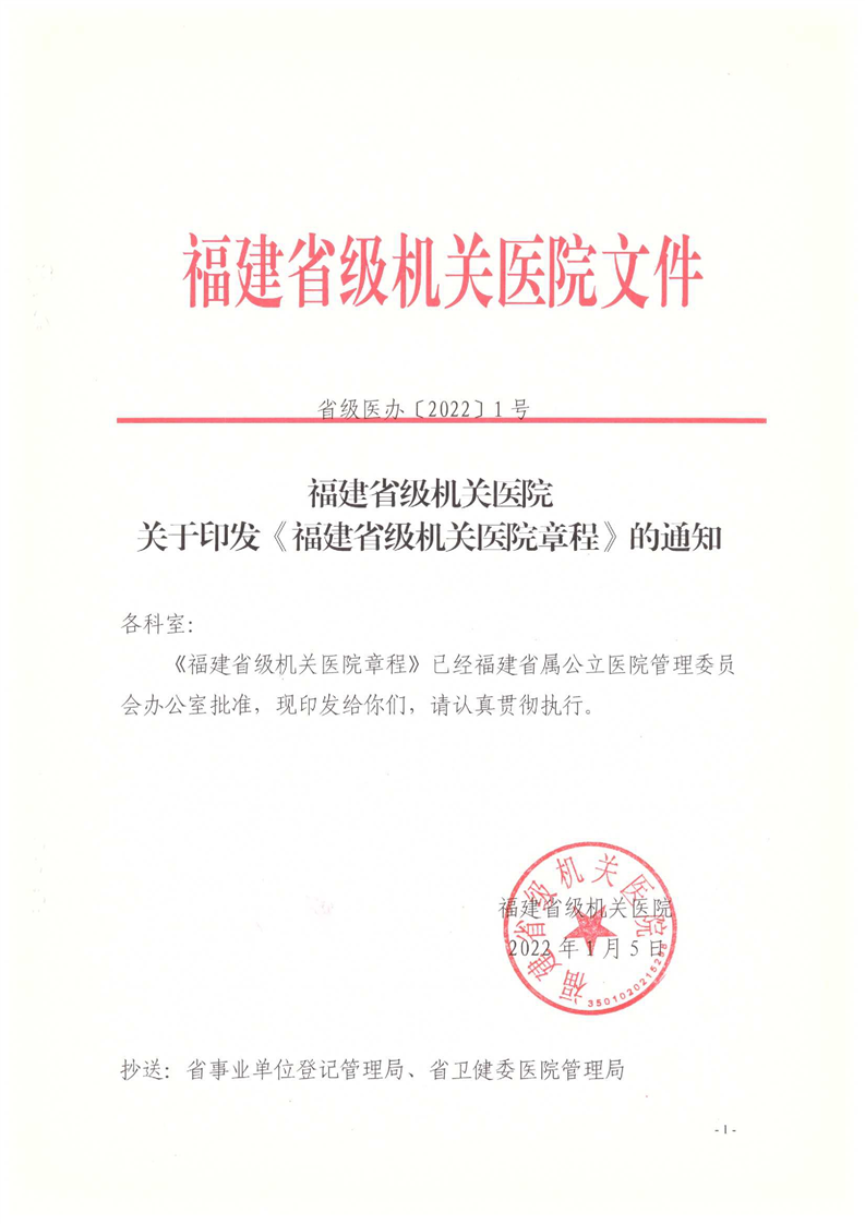關(guān)于印發(fā)《福建省級(jí)機(jī)關(guān)醫(yī)院章程》的通知