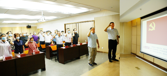 隨后,在黨委副書(shū)記黃純領(lǐng)誓下,全體黨員面向鮮紅的黨旗,高舉右拳,莊嚴(yán)宣誓:“我志愿加入中國(guó)共產(chǎn)黨,擁護(hù)黨的綱領(lǐng),遵守黨的章程……”新黨員向黨許下鄭重誓言,老黨員重溫入黨誓詞,宣誓聲音鏗鏘有力,振奮人心,共同表達(dá)了對(duì)黨的忠誠(chéng),更加堅(jiān)定了為共產(chǎn)主義事業(yè)、為人民衛(wèi)生健康事業(yè)發(fā)展奮斗終身的決心。