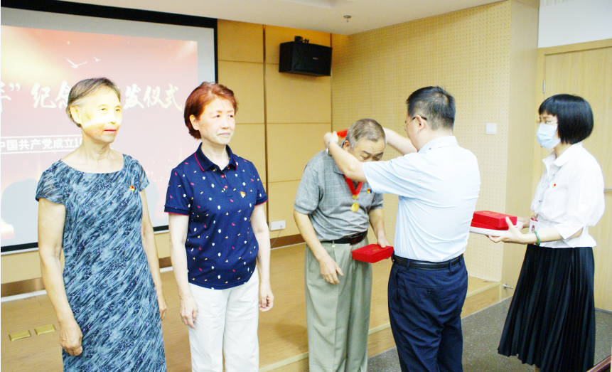 黨委書(shū)記黃守勤代表黨委班子為“光榮在黨50年”的老黨員頒發(fā)紀(jì)念章,并向他們致以熱烈的祝賀和崇高的敬意,同時(shí)激勵(lì)年輕黨員堅(jiān)定理想信念,矢志不渝跟黨走,始終不忘“來(lái)時(shí)路”,在新時(shí)代繼續(xù)拼搏奮斗,傳承老一輩共產(chǎn)黨員的奮斗拼搏精神,持續(xù)推動(dòng)醫(yī)院實(shí)現(xiàn)高質(zhì)量發(fā)展。