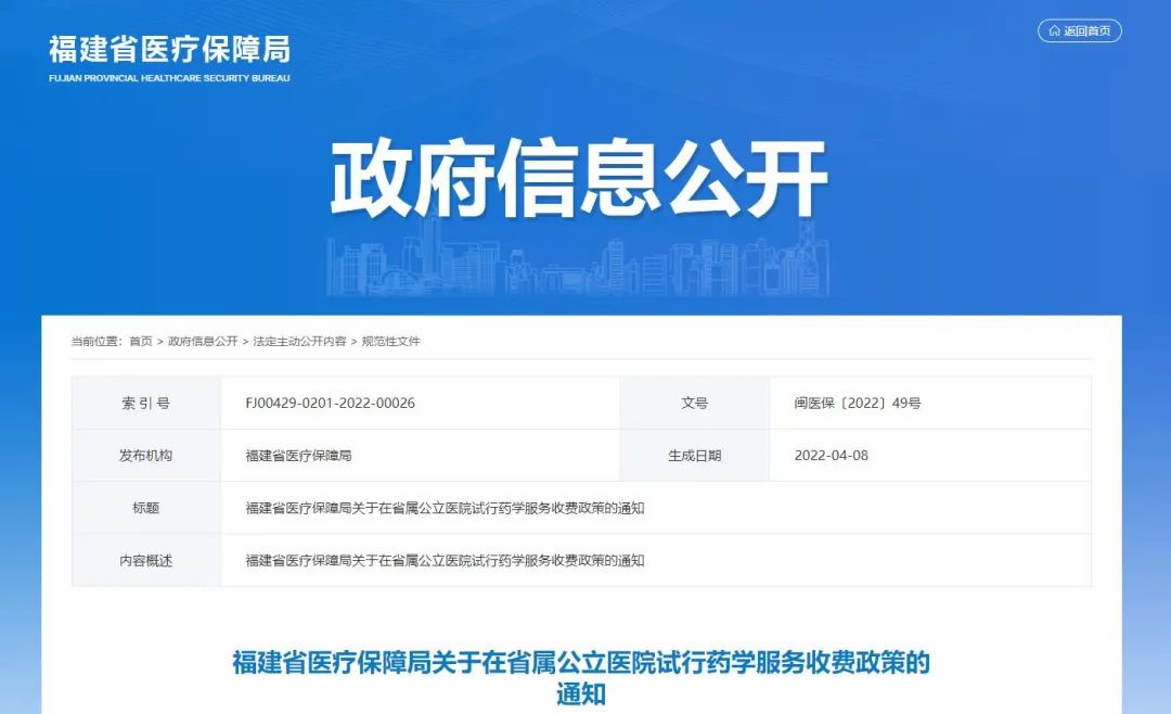 為穩(wěn)妥有序探索藥學(xué)服務(wù)收費政策,促進臨床用藥安全、有效、經(jīng)濟和可負擔(dān),《福建省醫(yī)療保障局關(guān)于在省屬公立醫(yī)院試行藥學(xué)服務(wù)收費政策的通知》正式落地,自2022年7月1日起試行一年。