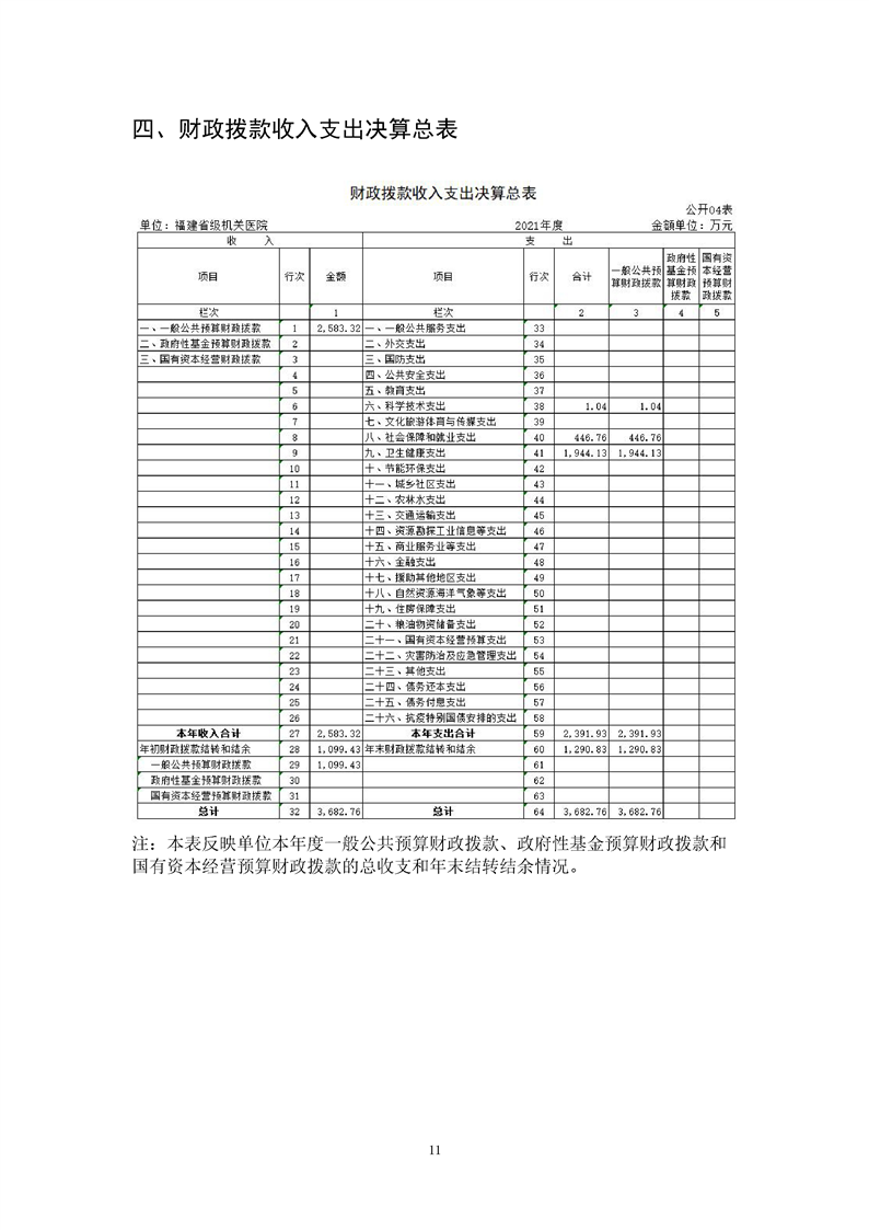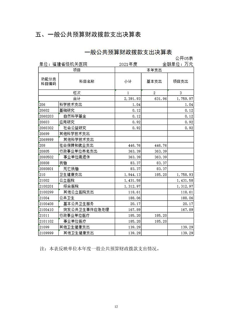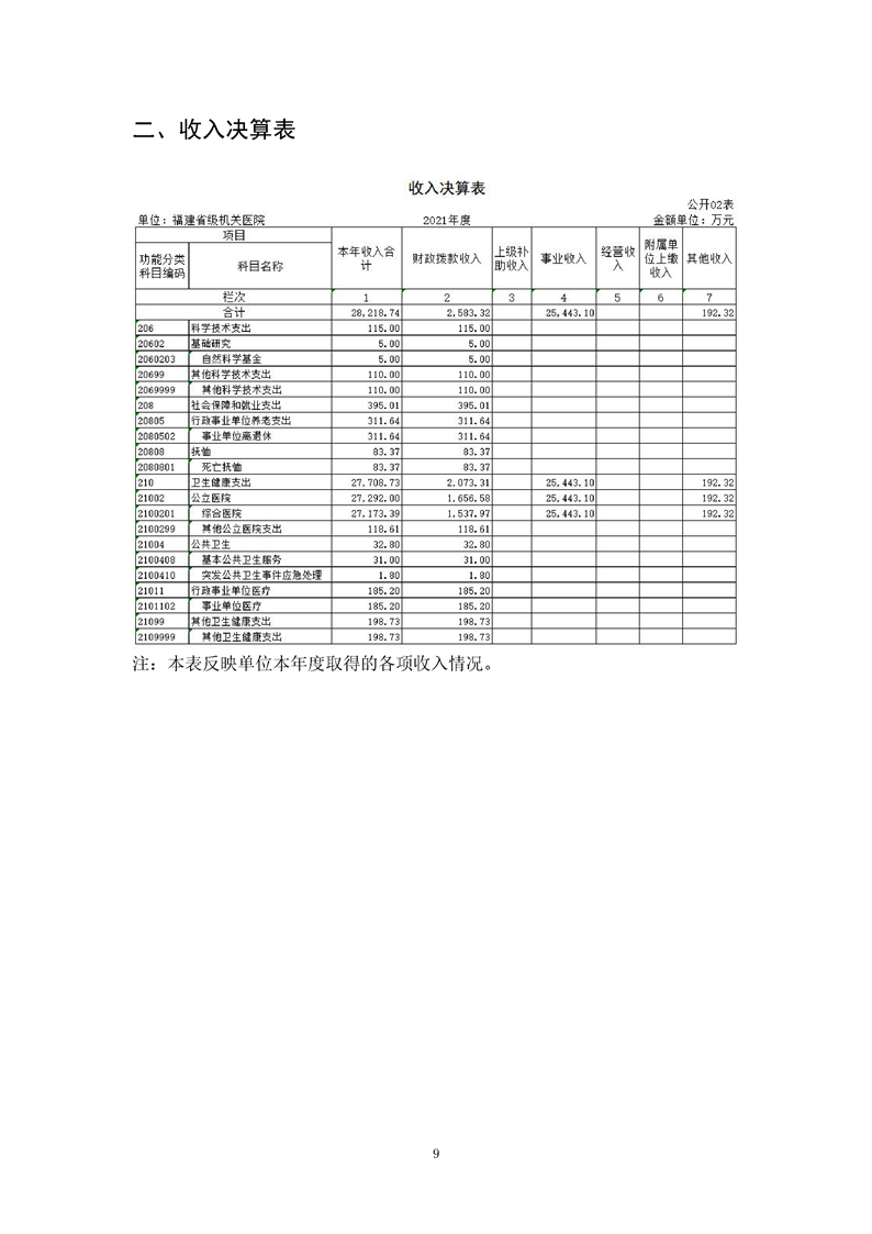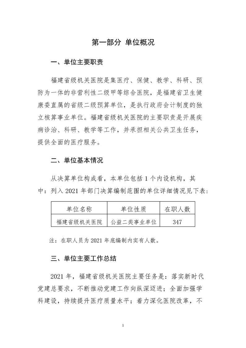 2021年度福建省級機(jī)關(guān)醫(yī)院決算公開報告