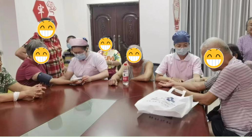 “發(fā)現(xiàn)一例早癌,挽救一條生命,幸福一個家庭”,講座過程中,繆醫(yī)生強調(diào)了胃腸鏡檢查的重要性,引起大家的共鳴。講座結(jié)束后,繆醫(yī)生耐心回答大家的疑惑,同時腫瘤??平M成員護(hù)士長陳清、護(hù)士王詩琦,內(nèi)鏡??菩〗M成員護(hù)士黃秀容、護(hù)士林麗芬,開展了簡短的義診活動,為在場居民測量血壓、血糖,并宣傳腫瘤防治的知識及指導(dǎo)飲食,得到社區(qū)居民的認(rèn)可。