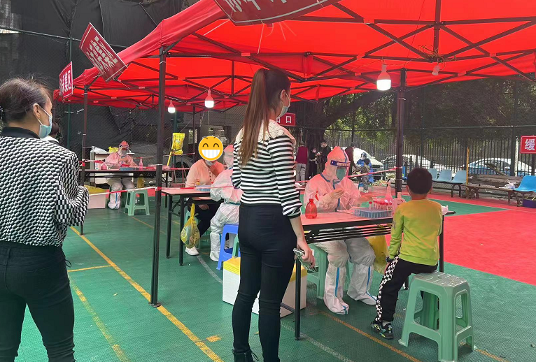 我院醫(yī)務(wù)志愿者們?cè)谏鐓^(qū)采樣點(diǎn)開(kāi)展核酸采樣工作