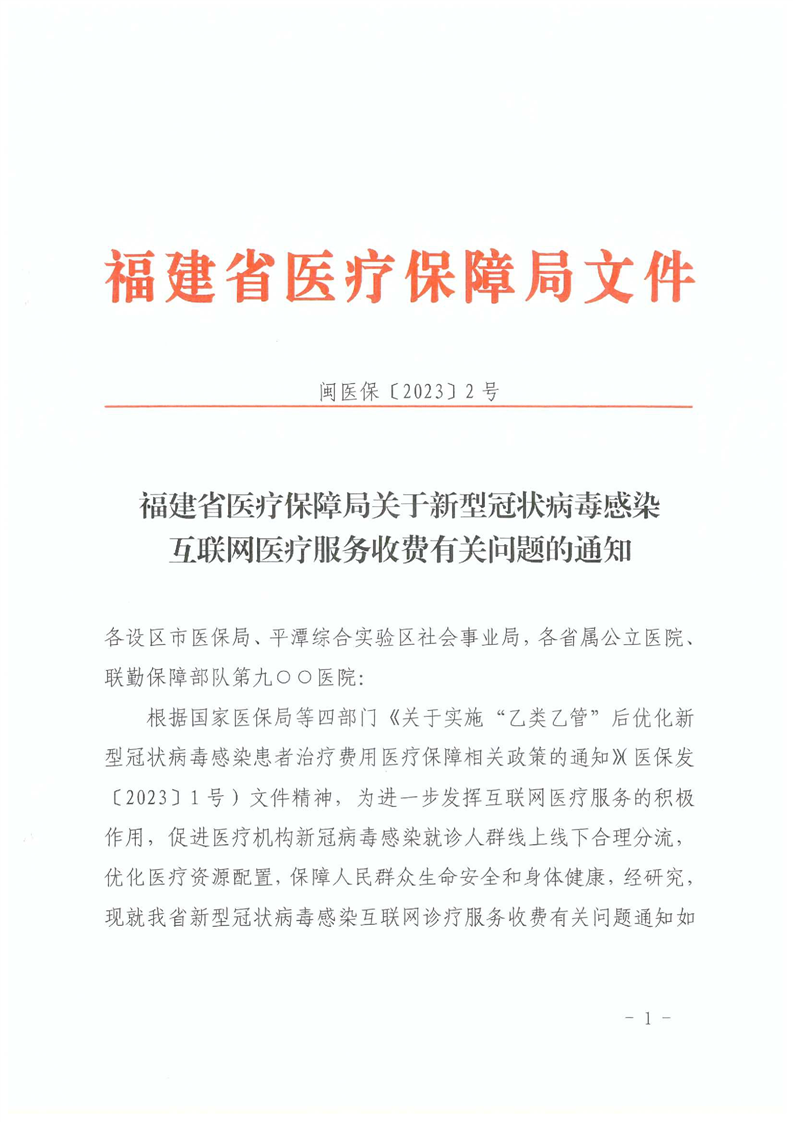 福建省醫(yī)療保障局關(guān)于新型冠狀病毒感染互聯(lián)網(wǎng)醫(yī)療服務(wù)收費有關(guān)問題的通知