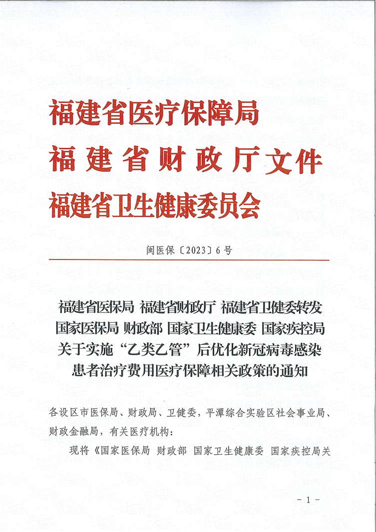 關于實施“乙類乙管”后優(yōu)化新冠病毒感染患者治療費用醫(yī)療保障相關政策的通知
