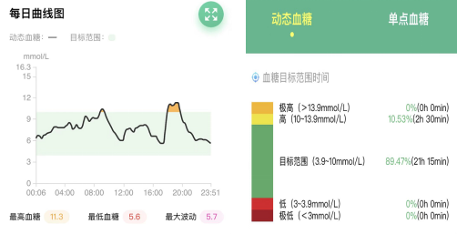 2.“全程有譜”:實(shí)時(shí)繪制出精確的每日血糖變化曲線,在曲線上標(biāo)有運(yùn)動(dòng)、飲食等事件的標(biāo)志,可以看清血糖波動(dòng)規(guī)律,及時(shí)、精準(zhǔn)地調(diào)整治療,制定個(gè)體化方案,幫助糖友早日血糖達(dá)標(biāo)。