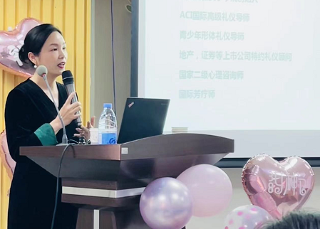 本次活動特邀ACI高級禮儀師張銳凝老師進(jìn)行專業(yè)授課。她表示,禮儀是一個人文化修養(yǎng)、交際能力的外在表現(xiàn),代表了一個人的素質(zhì)涵養(yǎng)和個人風(fēng)度。