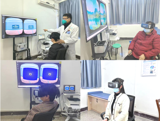 今年,我院前庭康復(fù)室引進了國內(nèi)最先進的VR前庭康復(fù)系統(tǒng),該系統(tǒng)基于傳統(tǒng)的前庭康復(fù)訓(xùn)練機理,通過前庭-視覺-本體覺的交互作用,促進前庭平衡功能康復(fù)訓(xùn)練。采用虛擬現(xiàn)實技術(shù)將傳統(tǒng)康復(fù)訓(xùn)練中的2D訓(xùn)練場景轉(zhuǎn)化為模擬真實生活的3D訓(xùn)練場景,訓(xùn)練內(nèi)容生動、有趣,鼓勵患者主動參與互動,提高患者康復(fù)訓(xùn)練的依從性。