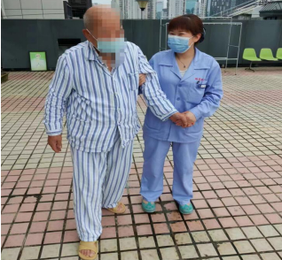 95歲的老爺子在每天治療結(jié)束后,都要走一走鍛煉身體,所以小小的病房可“關(guān)”不住他。這不鍛煉時間一到,病區(qū)過道、平臺就能發(fā)現(xiàn)他的身影。為確保老爺子的鍛煉不被打斷,也保障他行走安全,護理員們?nèi)瘫q{護航,或跟隨或攙扶,做到眼神隨行不離身一秒。