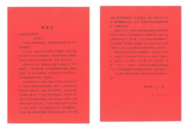 患者家屬對醫(yī)護人員盡心救治、護理員精心護理的感謝信
